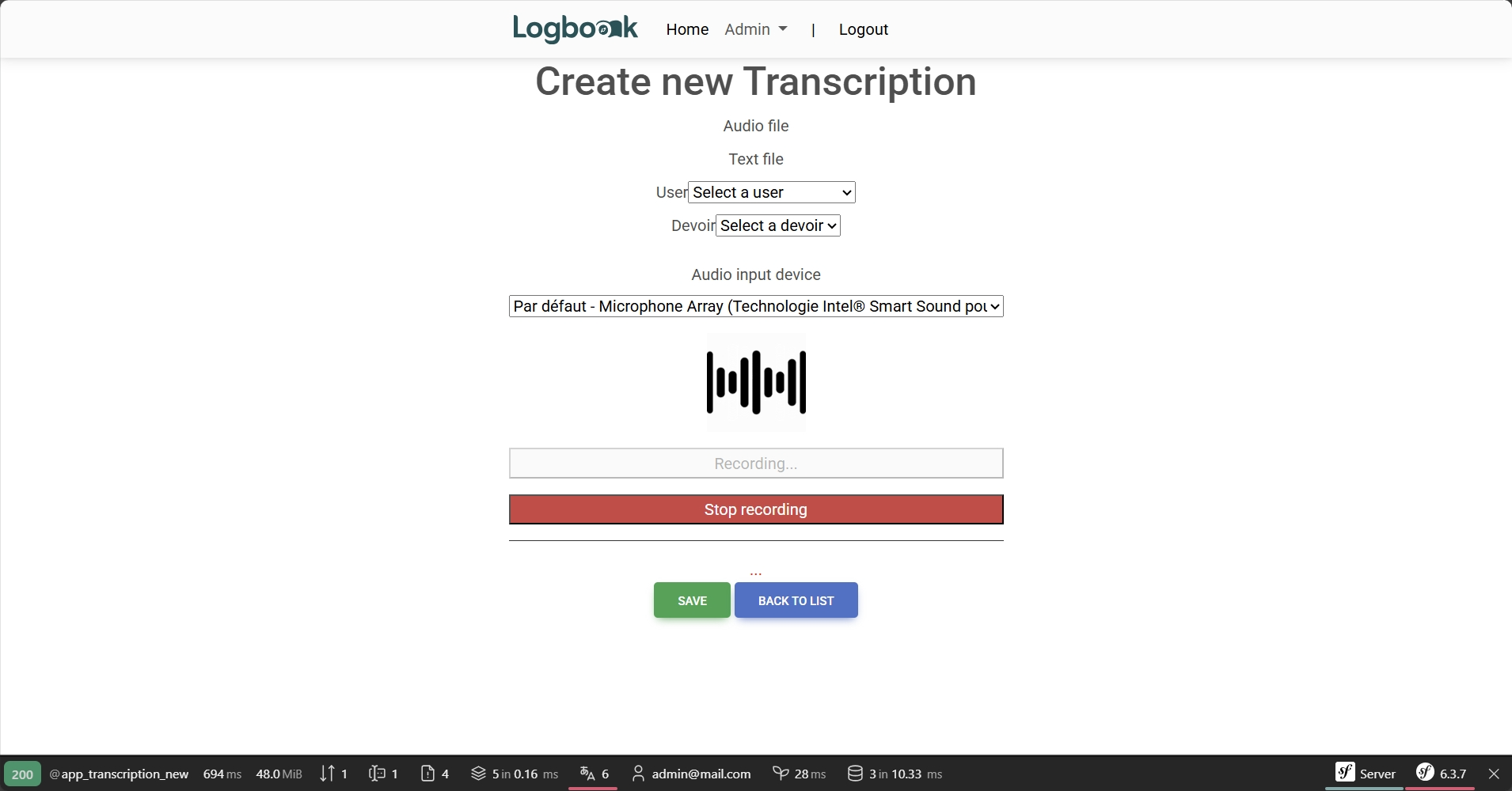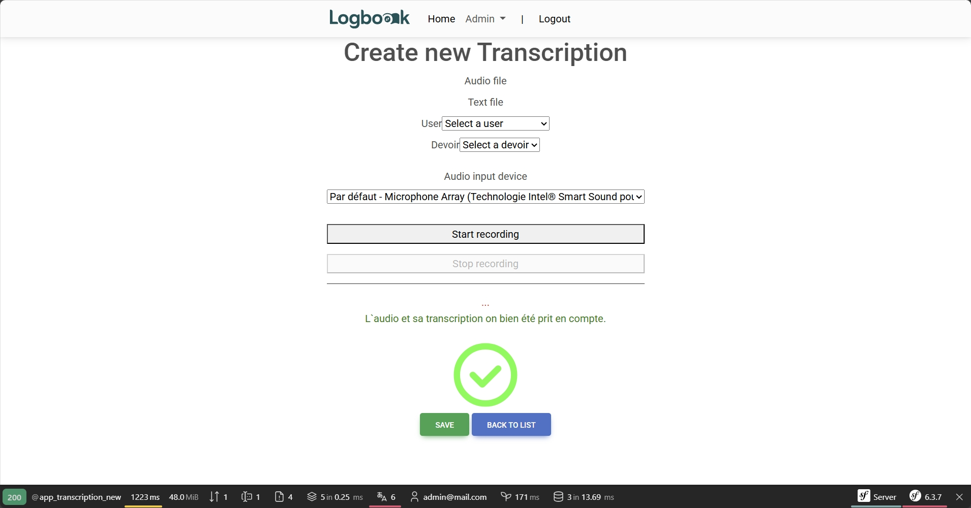- Back-end Symfony :